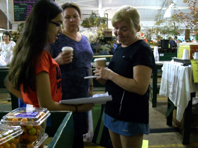 Volunteer kids met at Daniel Woodham’s (Goat Lady Dairy) market stall.